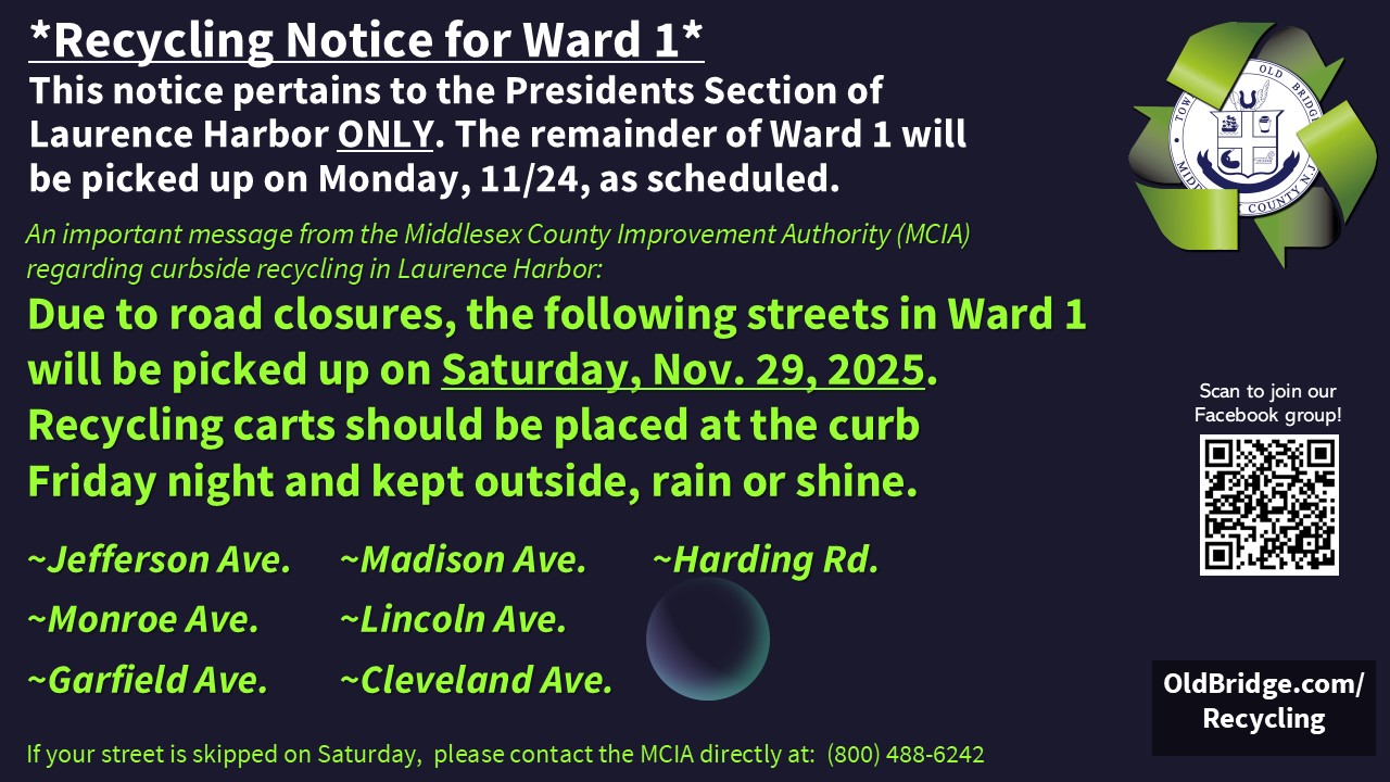 Any misses or concerns should be emailed to: recycling@oldbridge.com